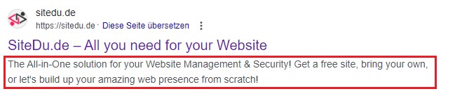Meta tag „description“ is a text which describes your website content. Even though search engines don’t really pay attention to description tag. It is often displayed in internet search results and allows users to decide whether to visit your website and whether it is relevant.